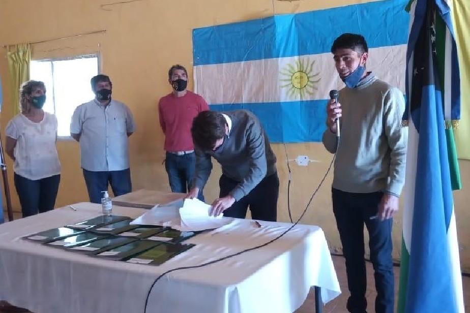 El ministro de Gobierno y Comunidad, Rodrigo Buteler, presidió la firma de los convenios entre la Provincia y diez Comisionados de Fomento para que las comunas accedan al subsidio dispuesto por la gobernadora Arabela Carreras, de modo de hacer frente a las exigencias financieras y compensar las pérdidas económicas producto de la crisis que generó la pandemia por COVID-19.