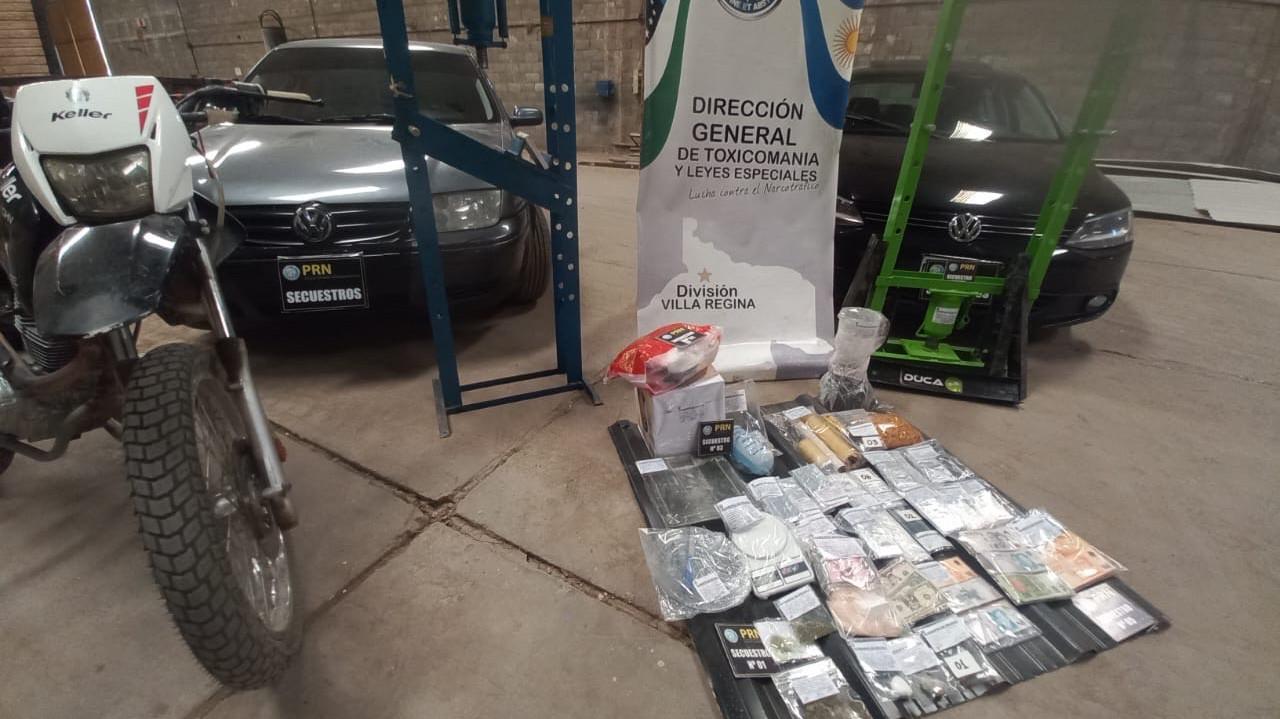 La División Toxicomanía y Leyes Especiales del Alto Valle Este logró desarticular una red dedicada al tráfico y la venta de drogas en Villa Regina. Durante una serie de allanamientos simultáneos, se secuestraron cocaína, marihuana, vehículos de alta gama y diversos elementos vinculados a la actividad ilícita. Como resultado del operativo, ocho personas quedaron vinculadas a la causa y un joven fue detenido.